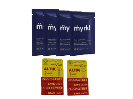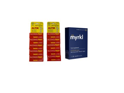 Kombinace, se kterou už nemusíte mít obavy sednout ráno za volant. Balení 30 kapslí Myrkl + 10 jednorázových alkoholtesterů do zásoby.