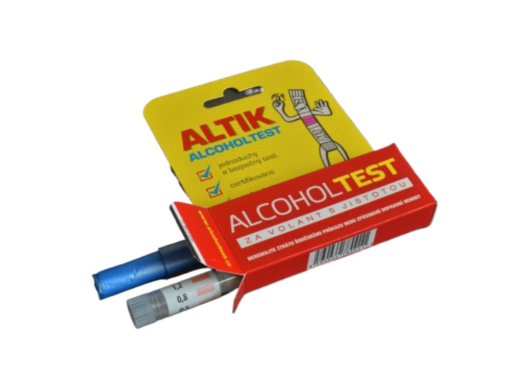 Jednoduchý a bezpečný test, který slouží k orientačnímu zjištění alkoholu ve vydechovaném vzduchu. Test je určen k jednorázovému použití. Neobsahuje toxický chróm.